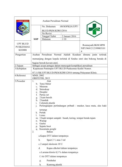 Metode yang digunakan dalam laporan tugas ahkir( lta ) ini secara continuity. "asuhan kebidanan komprehensif pada ny. Kala i berlangsung 4 jam 40 menit,. Asuhan sesuai dengan standar asuhan persalinan normal mulai dari ibu datang,. Pada saat persalinan menggunakan 58 langkah apn dan asuhan masa nifas normal.