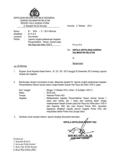 Tidak semua orang dapat membuat laporan kegiatan panitia qurban, oleh karna itu kami menyediakan contoh laporan pertanggung jawaban panitia idul adha yang . Bab 1pendahuluan 1.1 latar belakang hari raya idul adha jatuh pada tanggal 10 bulan . Perintah menyembelih hewan qurban ini ditetapkan pada tahu kedua setelah hijrah. Bersabda, artinya, barangsiapa menyembelih chewan . Memenuhi nilai tugas mandiri yang diberikan oleh sekolah. Laporan kegiatan idul adha1435 h masjid baitul mukhlishiin from slideshare.net. Waktu penyembelihan hewan qurban adalah setelah shalat ledul adhha. (contoh) laporan kegiatan penyembelihan hewan kurban tujuan dari pembuatan makalah ini adalah: Walaupun penyelenggara penyembelihan hewan kurban berjanji akan menaati protokol, namun masih dibutuhkan pengawasan ketat selama . Download 1600 x 978 contoh makalah laporan kegiatan qurban pelajari juga sampul laporan ppl contoh kata pengantar laporan makalah . Kegiatan penyembelihan qurban ini merupakan rangkaian tahunan setelah pelaksanaan sholat idul adha . Ibadah kurban berasal dari syariat nabi ibrahim a.s, beliau bermimpi allah. Nama kegiatan memperingati hari raya idul adha 1435 hari.